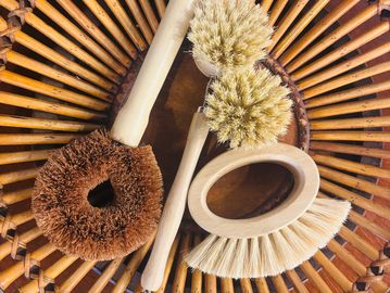 The natural dish brush set comes with an drain rack and ceramic dish keeping the bottom of the brush dry better. It is made of high-density, hard but flexible natural sisal mane, it can easily brush off various surface stains without damaging the surface.